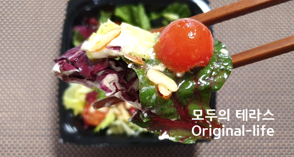 캡을 다 제거하고 샐러드를 휘젖휘젖하니