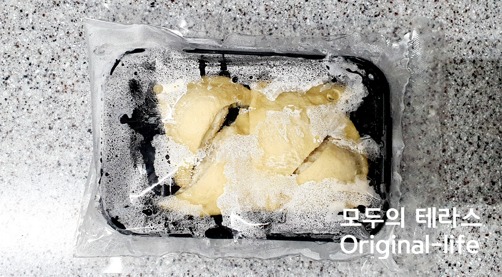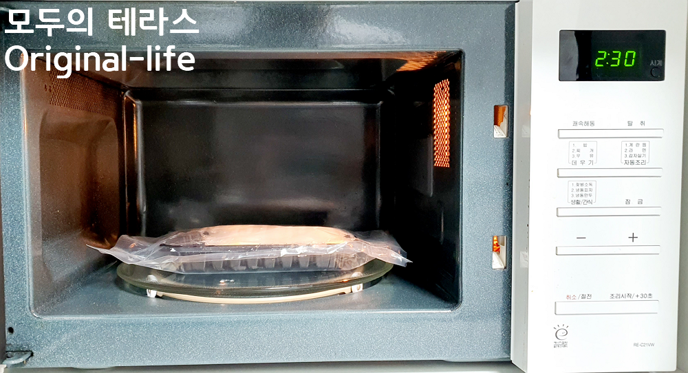 냉동식품이라서 봉투를 살짝 뜯고 내친구 전자레인지에 2분 30초만 돌리기만 하면 끝!
