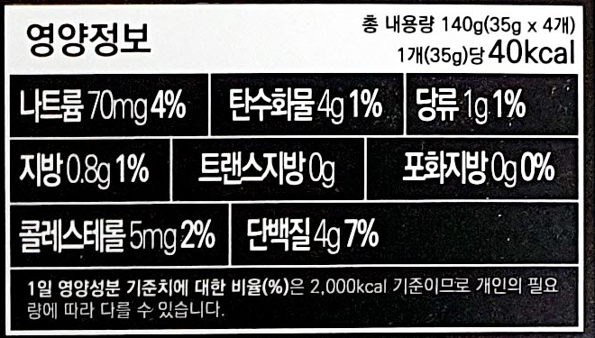저 1조각에 40kcal로, 4조각이면 160kcal라서 일반 식사 700kcal에는 한참 밑이예요.