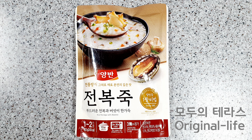 420g의 240kcal 전복죽 1~2인분 1봉지 구성이예요.