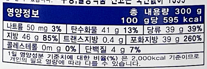 그리고 더 중요한 건 여기 있는 포화지방이 100g당 일일권장량의 260%라는 것!