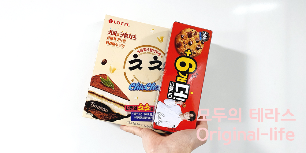 칙촉 오리지널은 티라미수 쪽 보다는 조금 딱딱한 쿠키지만 초코칩 때문에 봐줬어요.
