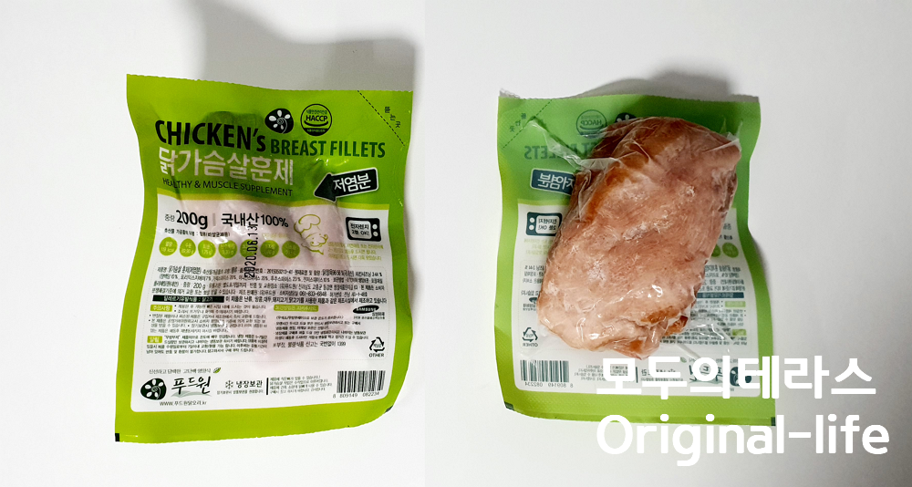 요새는 다이어트용 닭가슴살 제조가 잘되어있어서, 굳이 생 닭을 구입해서 삶지 않아도 훈제로 익혀서 냉동배송해주기 때문에 저는 이 제품을 선호하는 편이예요.