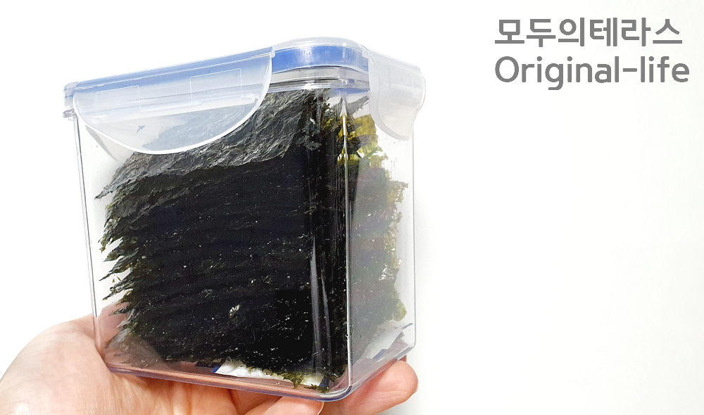 락앤락에 1입 거리만큼씩, 그러니까 크게 가로로 1번, 세로로 5번 잘라보니 요기 딱 들어가더라구요! 눅눅해지지 않게 제습제도 다먹은 영양제에 들어있던 거까지 같이 넣었어요!
