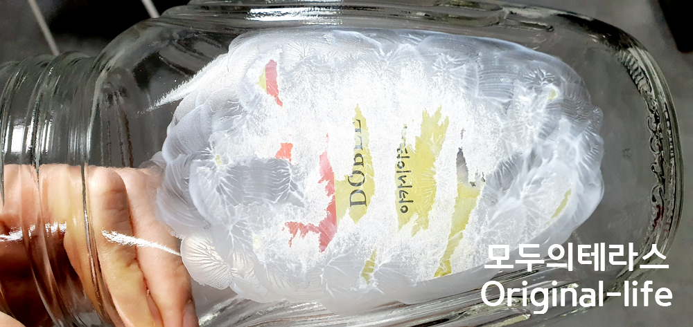결국, 어딘가 쓸 일이 있겠지라고 짱박아둘 목적으로 꿀통을 세척하다보니 아니 이건 뭐람. 스티커가 생각보다 단단하게 두꺼운 코팅 스티커였어요.