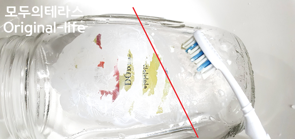 스티커의 끈끈이가 엄청 두꺼워서 요렇게 칫솔질을 1번, 그리고 남아있는 자잘한 찌꺼기들은 홈스타 뿌려서 칫솔질을 마무리 했어요!