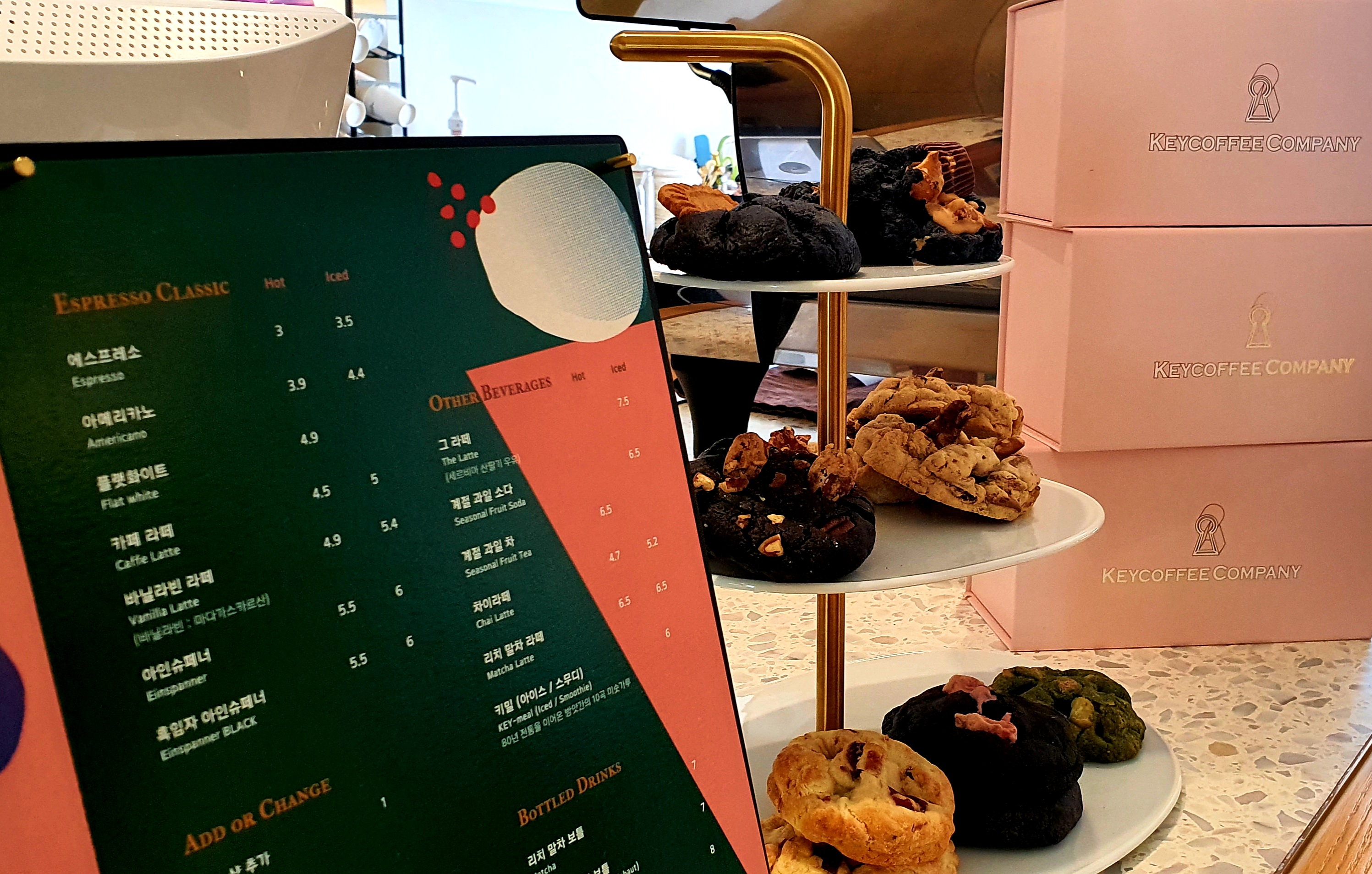 메뉴판 옆에 쿠키 샘플이 있어서 메뉴판과 샘플쿠키를 번갈아 비교해보며 선택할 수있어서 좋았어요!