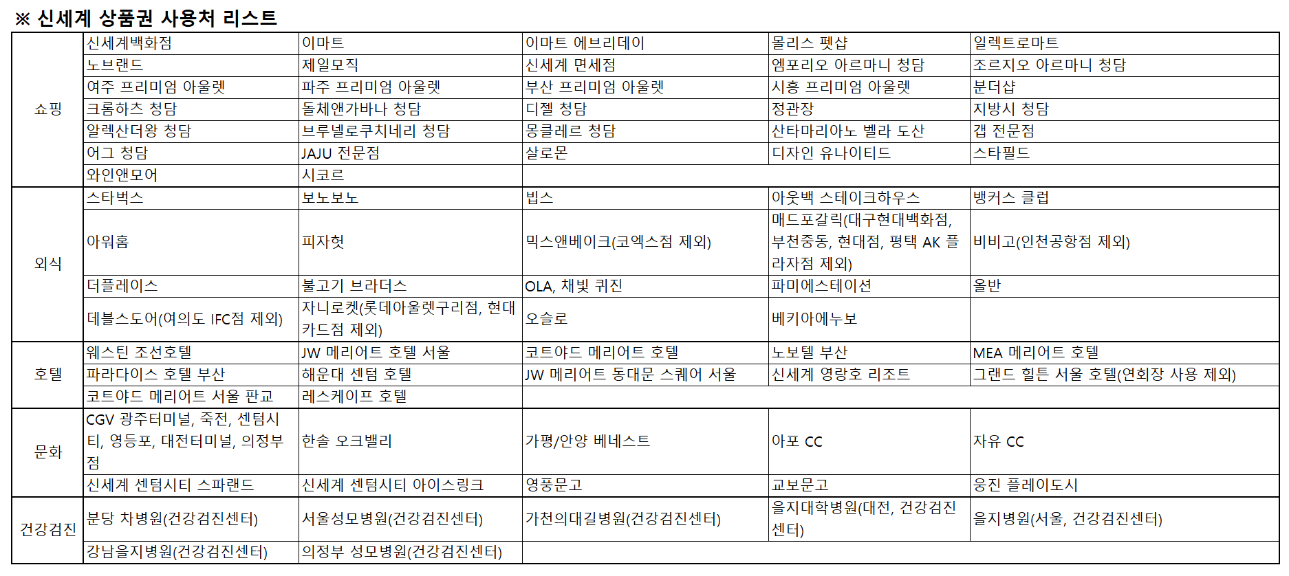 일단, 신세계상품권 사용처 리스트 보실께요~!