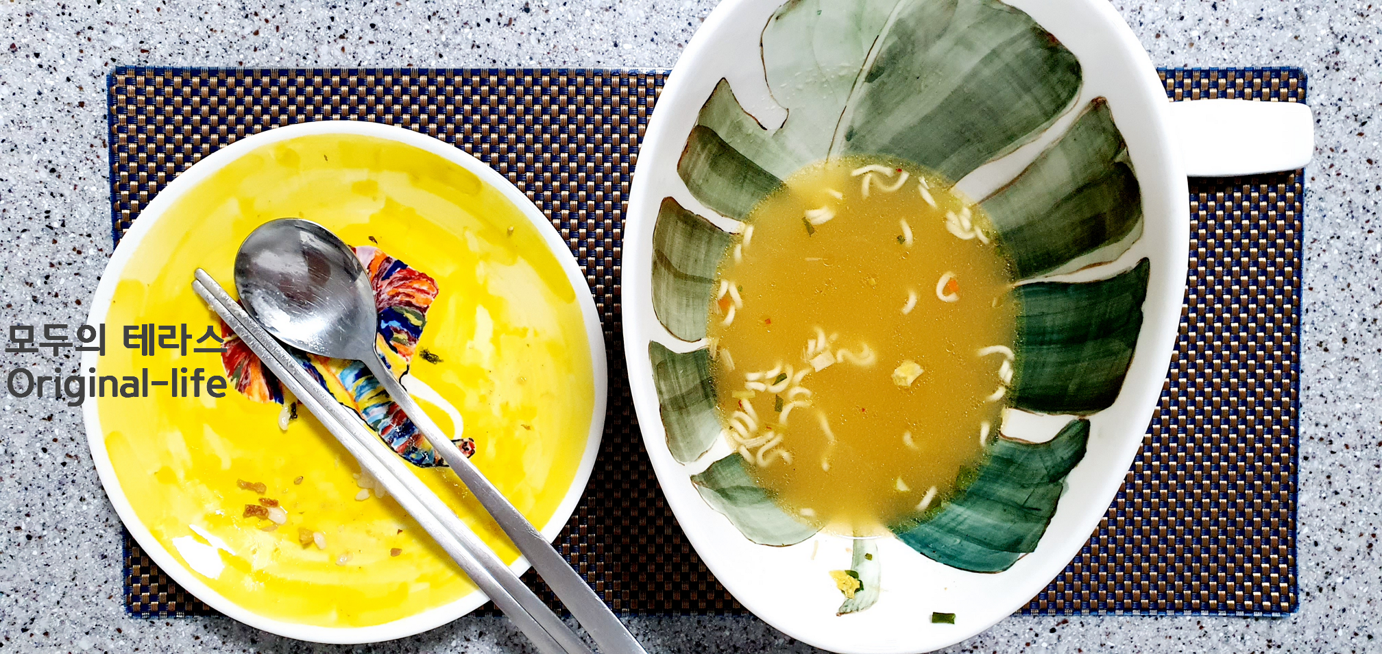 꼬꼬면은 저의 최애 접시에 담아 깔끔한 한끼 식사를 마련했습니다.