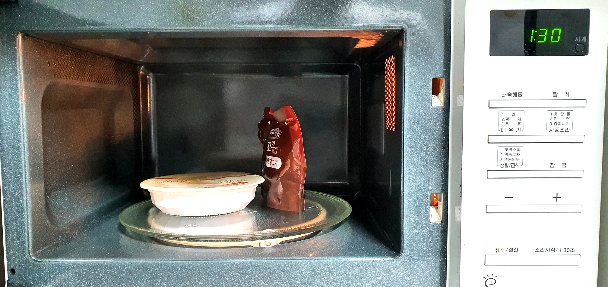 바로, 햇반 조리가 끝날 타이밍이 됩니다.
