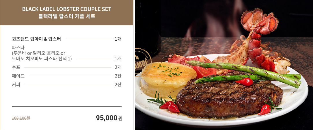 저희는 오늘 원래 런치메뉴를 먹으려다가 블랙라벨 랍스터 커플 셋트를 먹기로 했어요!