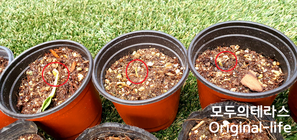 알갱이들은 흙이랑 섞이면 안좋다고 써있어서 따로 접시형태로 15알씩 올려놨습니당.