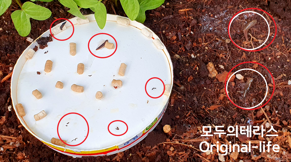 원리는 낮에 더울 때는 지들이 말라죽을 거 같으니까 안나오고, 밤에 시원할 때 민달팽이들이 먹이를 먹으러 표면으로 나온대요. 그래서 밤에 이걸 '맛있게 먹고 죽게됩니다'(라고 봉지에 써있음ㅋㅋㅋㅋ)