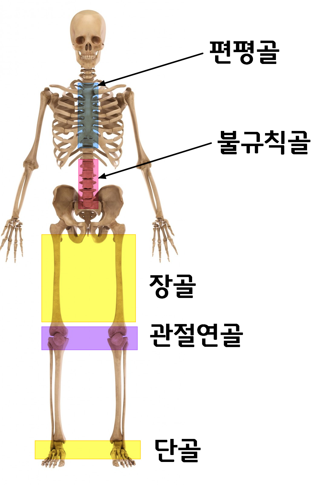 형태와 기능면으로 구분하면, 단골과 편평골, 불규칙골, 장골, 관절연골로 나눌 수 있습니다.
