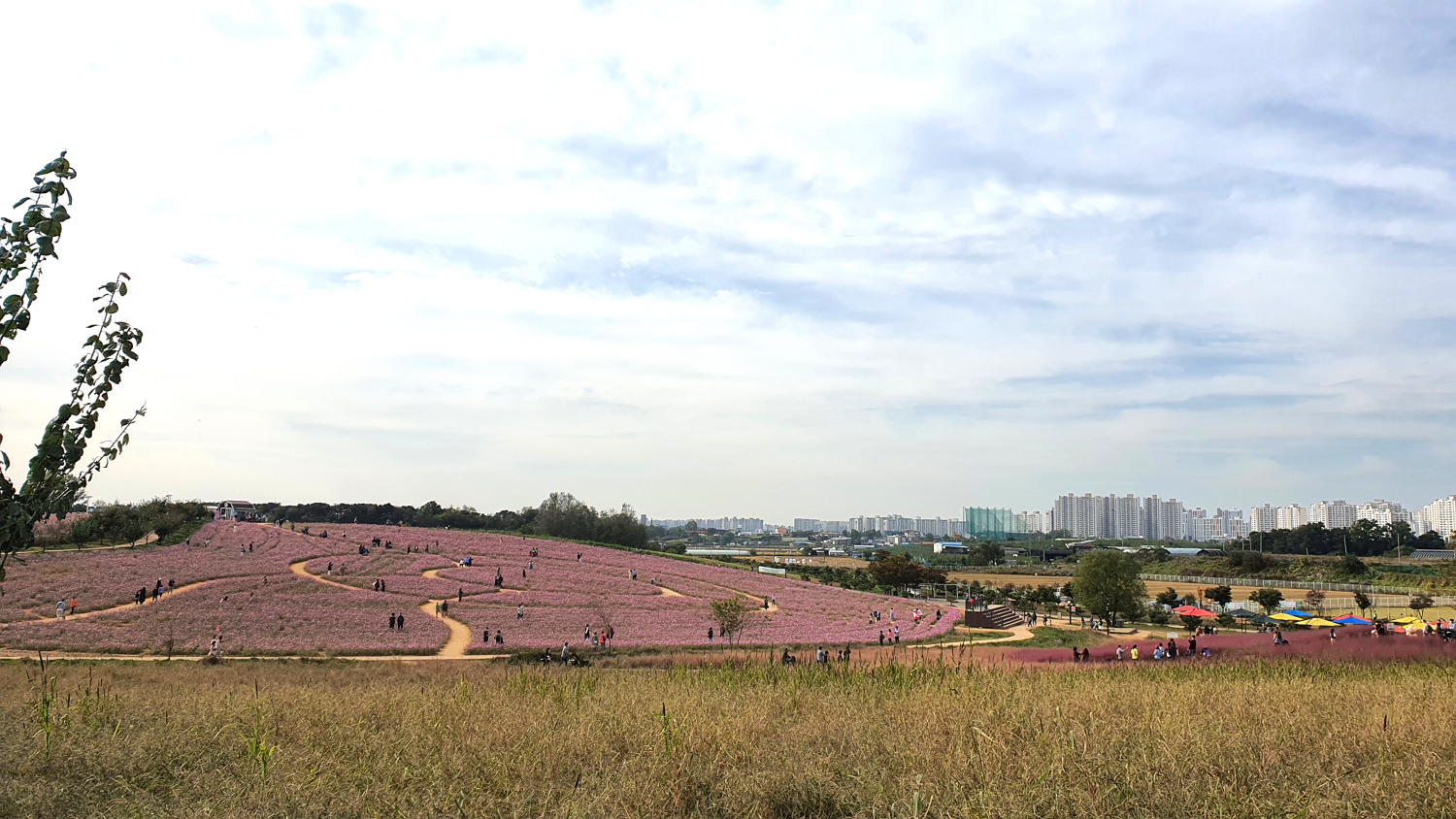 저 언덕 뒤쪽에 코스모스는 핑크뮬리 키처럼 크게 자란 애들이 있는 곳이라 코스모스 속에 폭 쌓인 사진을 찍을 수 있는 스팟이 많아요. 그래서 시간이 많으신 분들은 꼭 저 뒤쪽까지 저 대신 다녀와주세요ㅎㅎ