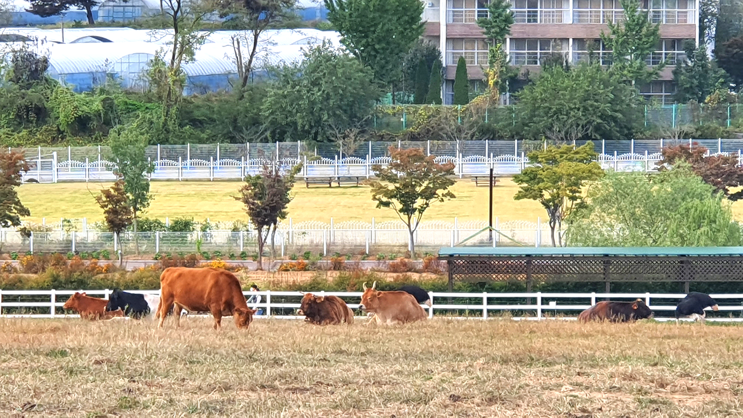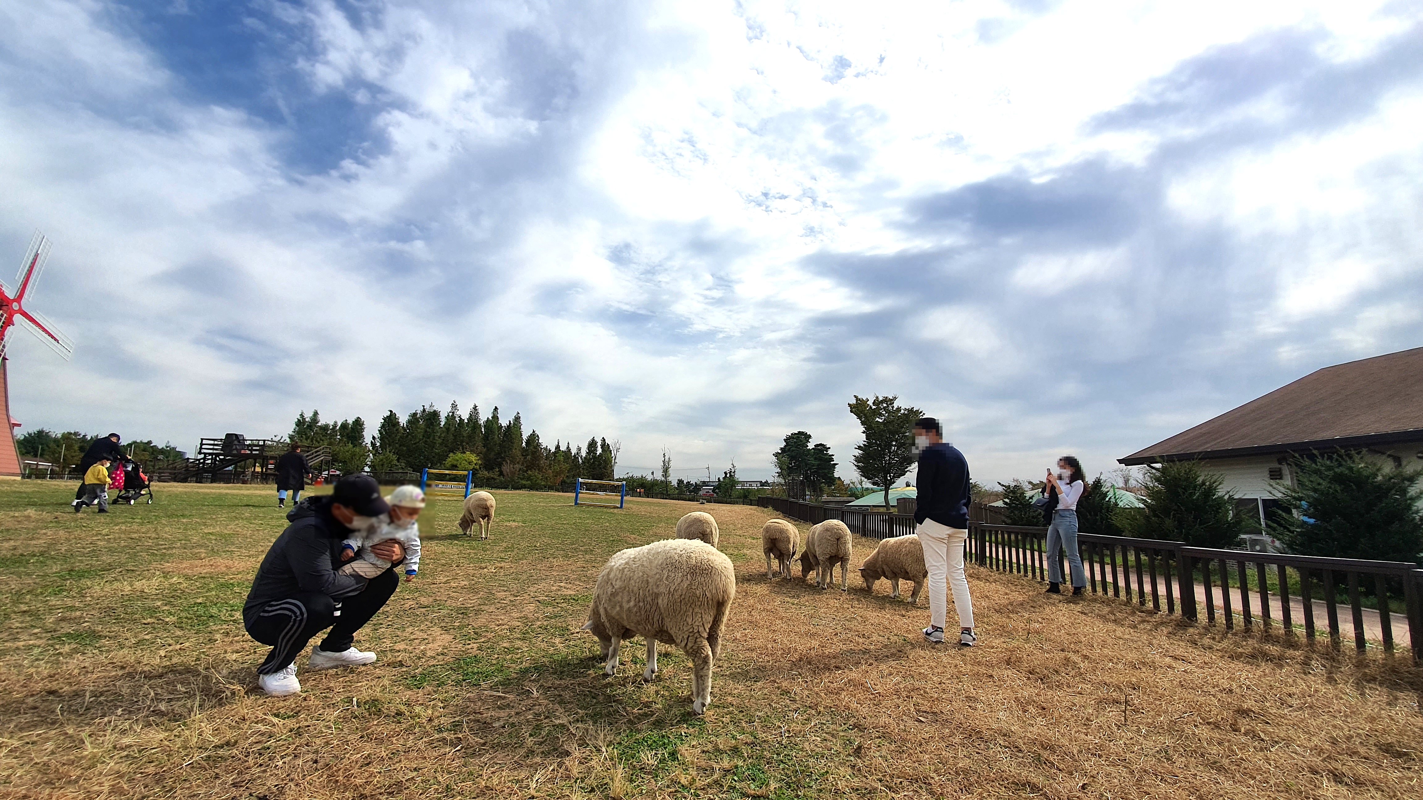 큰 목초지에 양떼목장이 있는데, 체험이 가능해서 아무렇게나 울타리 안으로 들어가서 사진 찍고 놀 수 있게 되어 있어요. 그래서 가족단위 어린이나 그냥 사람들이나 들어가서 양들을 구경하는데 얘네들이 인간친화적이라 가까이에 가도 도망가지 않고 그냥 쭉 풀만 뜯어 먹더라구요. 그냥 얘네들에게는 일상인가봐요ㅎ