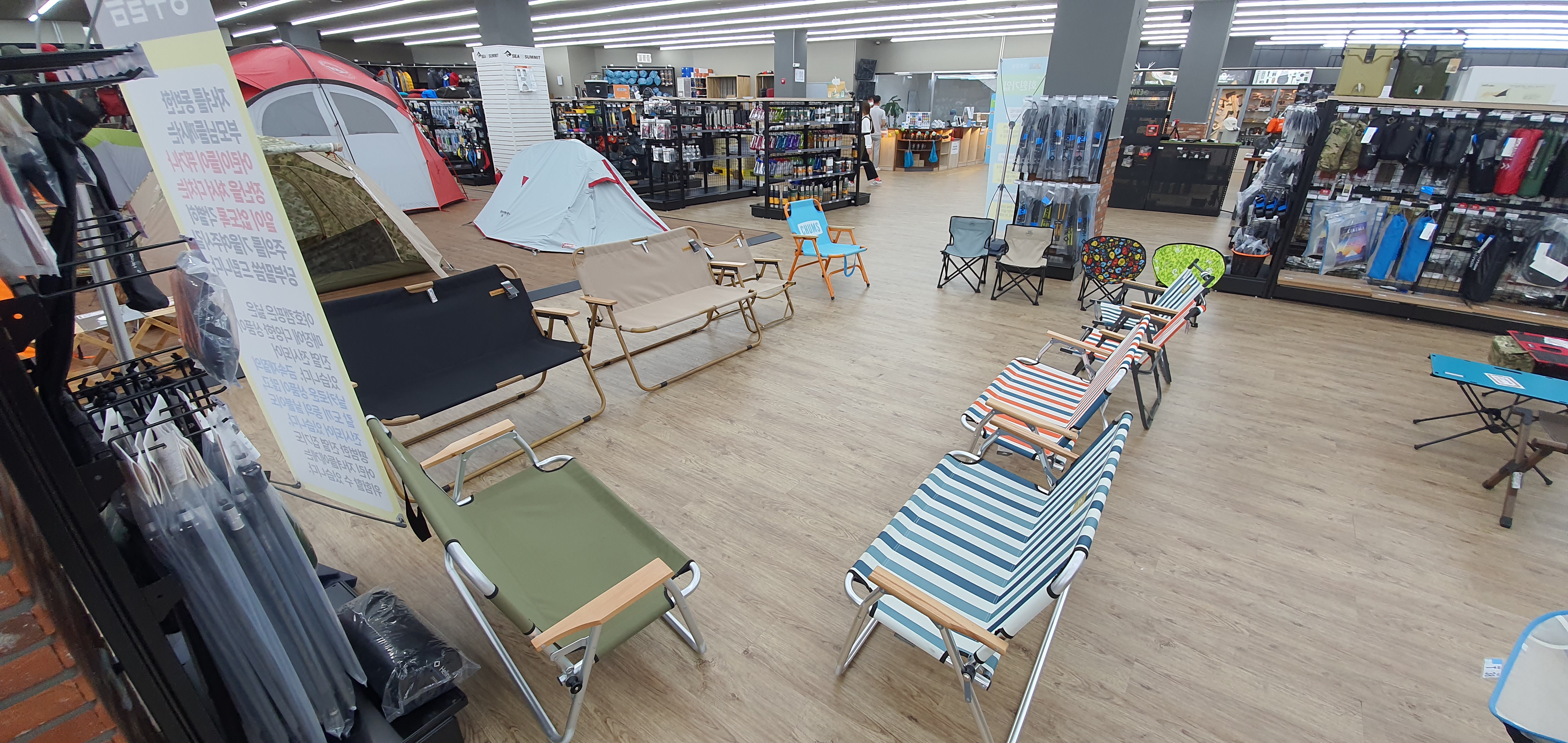 입구에 들어서면 느껴지는 광활함ㅎㅎㅎ 무려 600평이라는 걸 여기와서 처음 알았습니다. 어느 정도냐면, 홈플러스 한 층 다쓰는 그런 느낌이랄까? 모든 캠핑용품을 다 가져다 놓은 듯한 어마무시한 종류에 또 한번 눈이 휘둥그래졌습니다.
